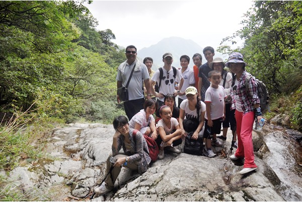 經(jīng)過7、8個多鐘頭的不斷上坡下坡,大汗淋漓、筋疲力盡的時候后我們終于在到達(dá)了風(fēng)景開發(fā)區(qū)的階梯,因為還要回長沙,周一要上班的原因。我們放棄了爬上金頂,一個個都腿腳如灌鉛了一樣,下山腳痛的厲害。相比如之前的爬坡下坡,這樣一 **一 **的臺階,似乎上下的更為辛苦。